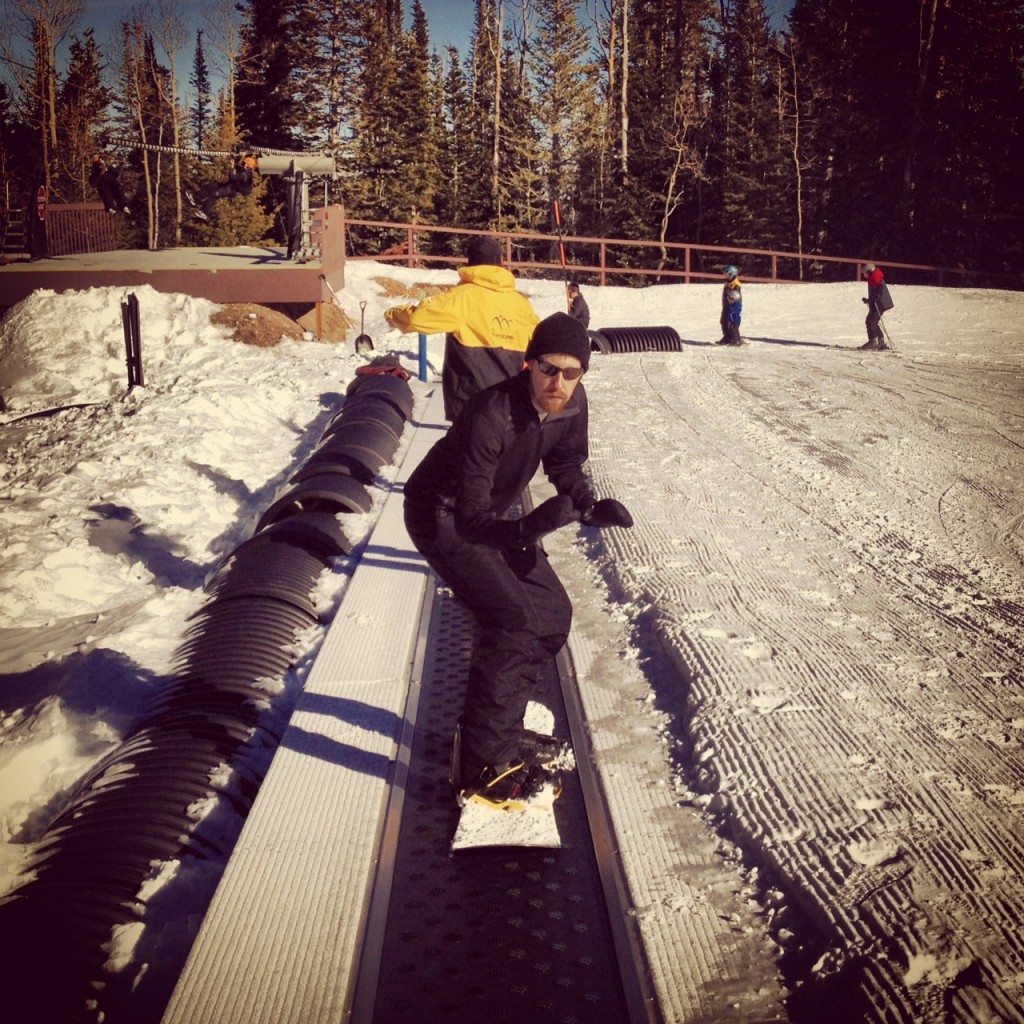 The beginner area at Canyons has an automated walkway that makes it easy to get back to the top of the slope after a run. After falling on my behind a few times during each run, I appreciated the assist!